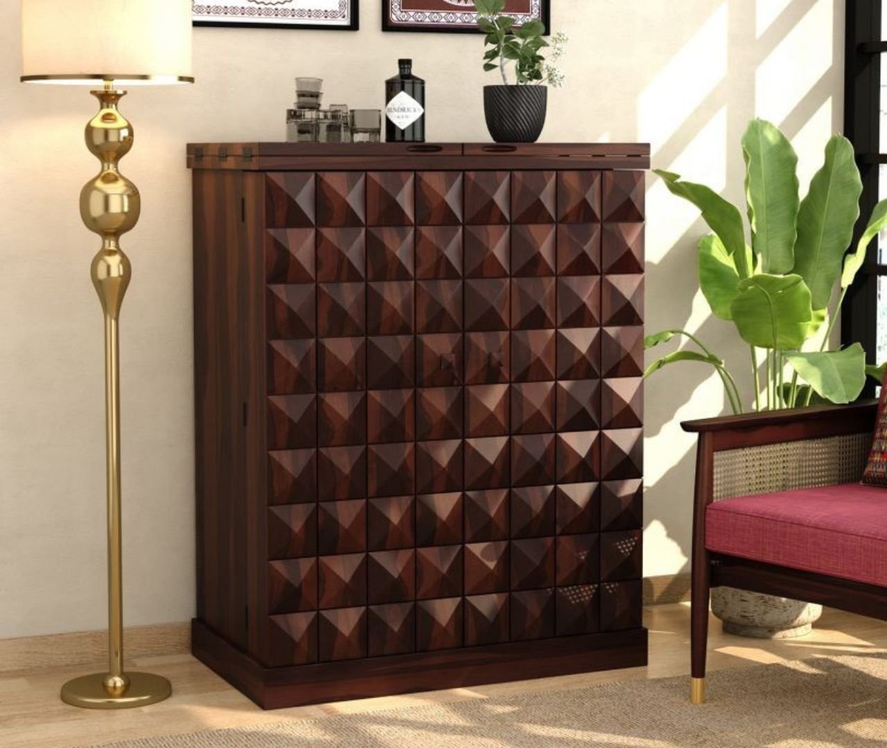 Aureon Bar Cabinet – Teak Finish