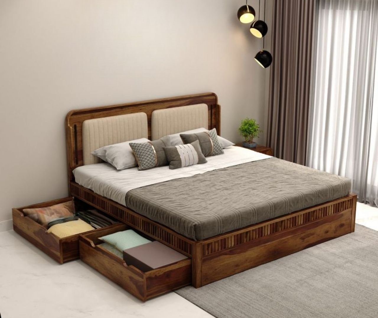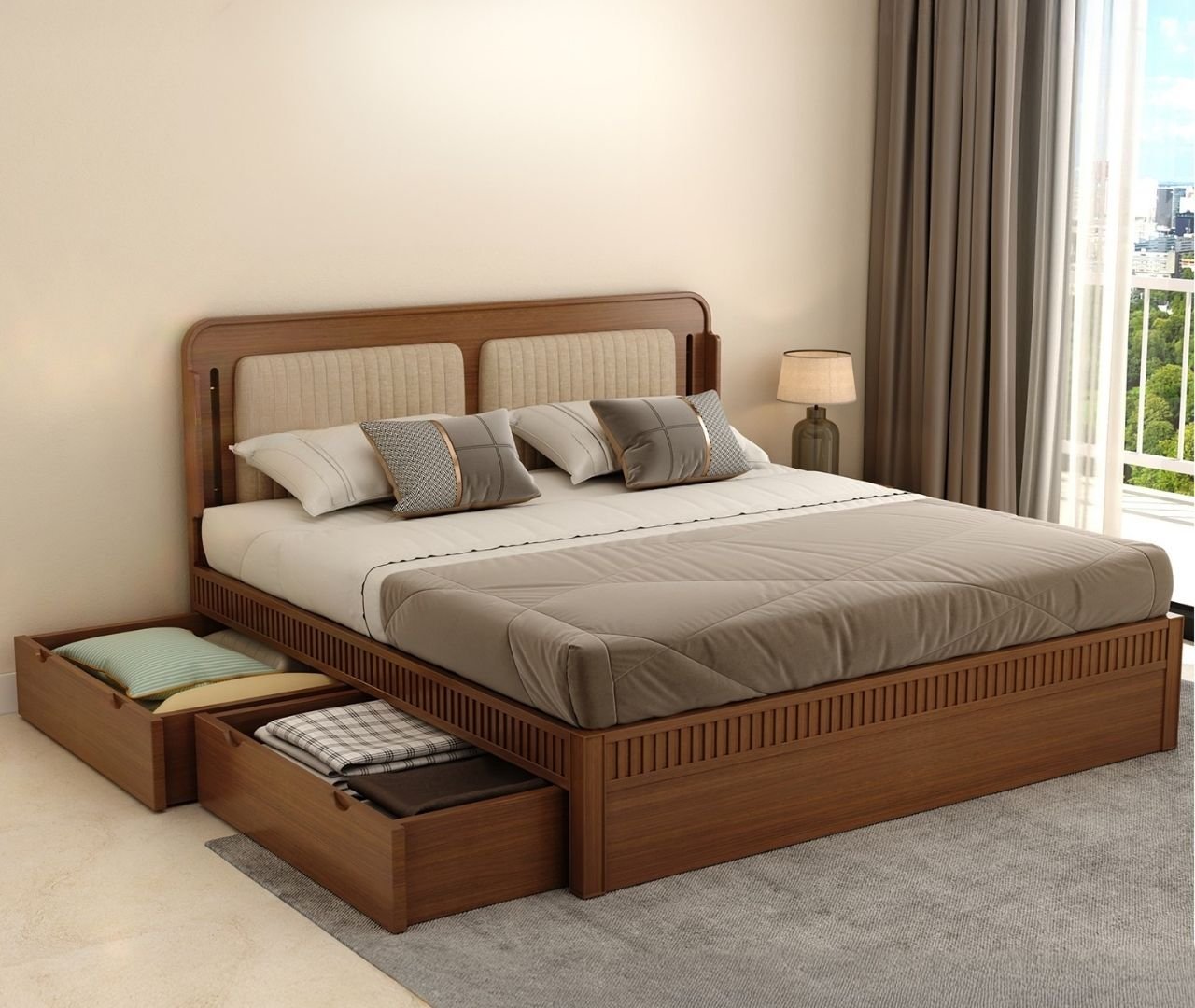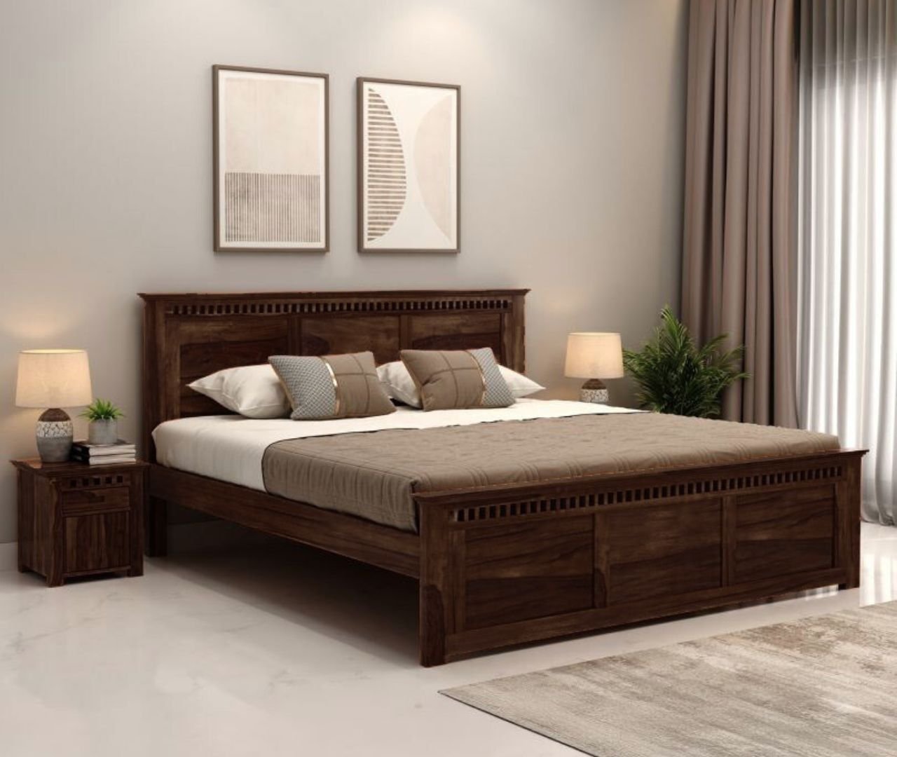 ZenSpace Queen Bed Without Storage-Walnut