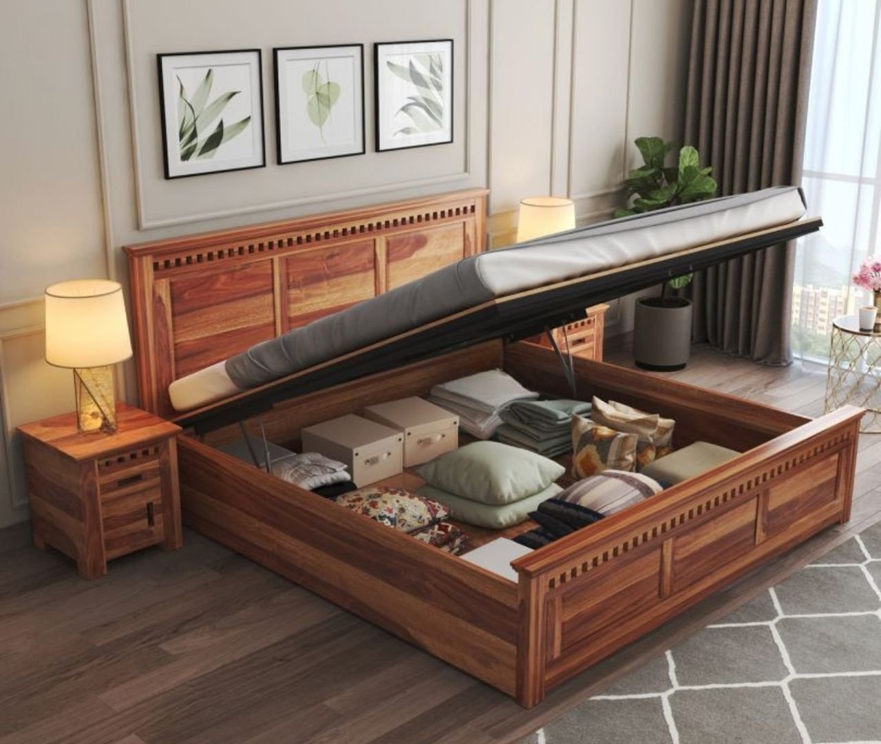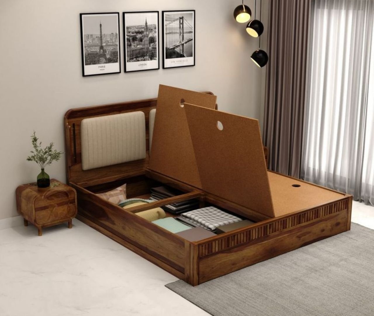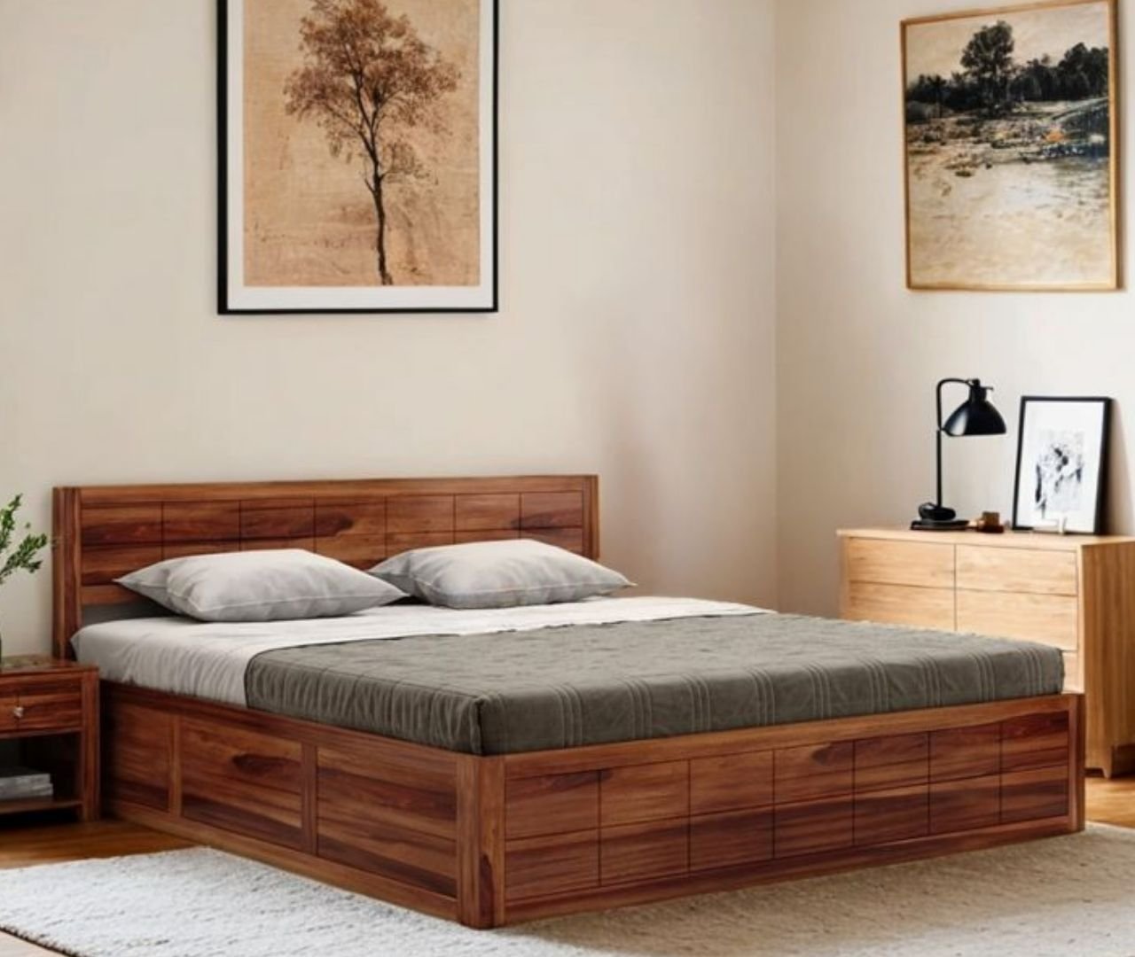 ZenSpace King Bed With Hydraulic Storage-Teak