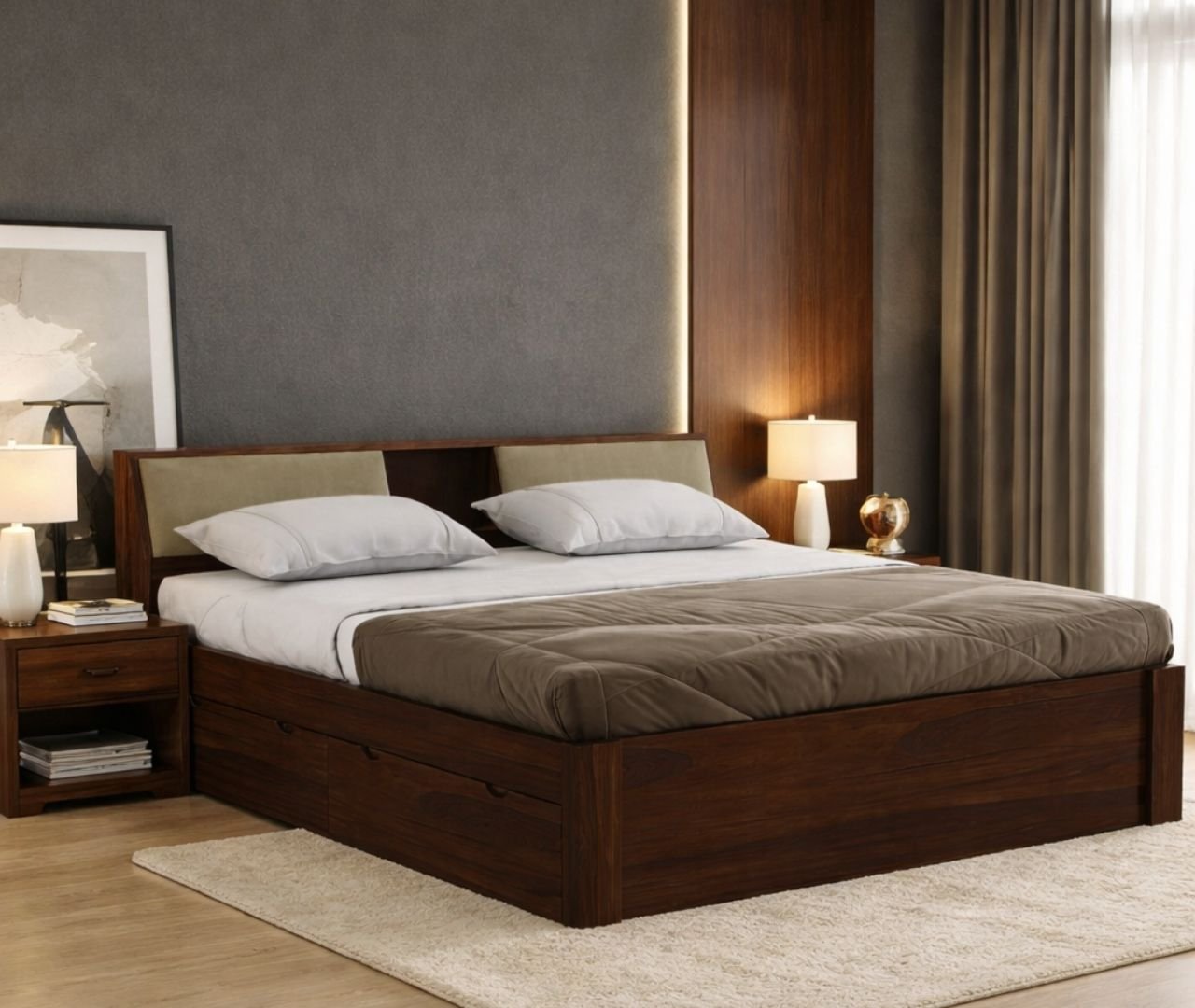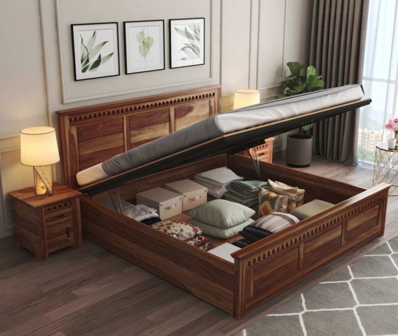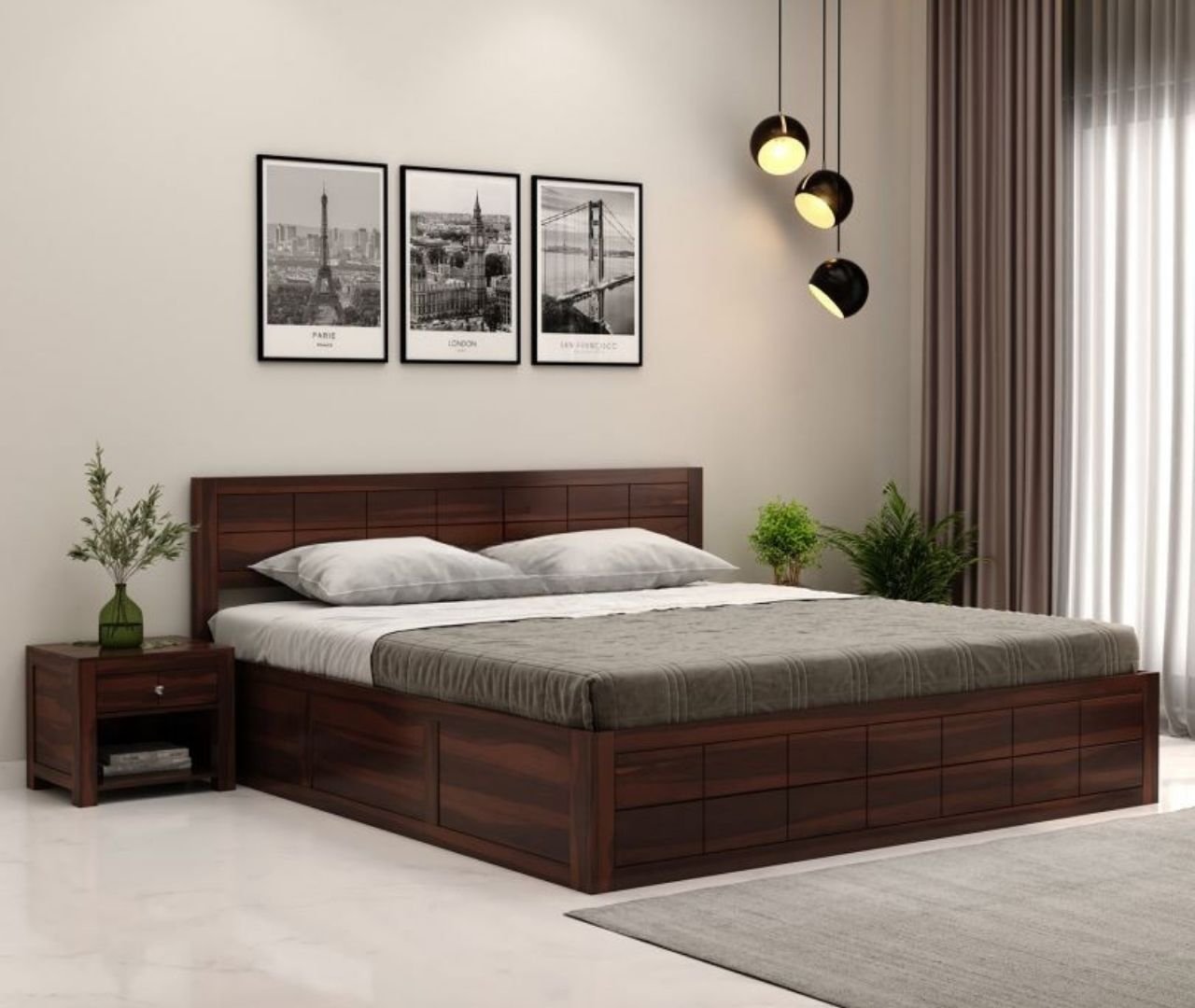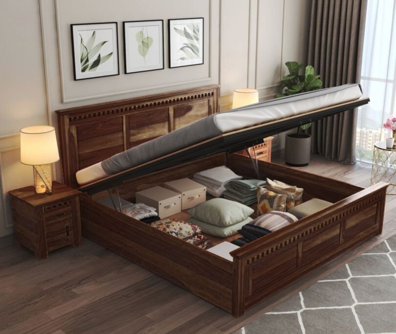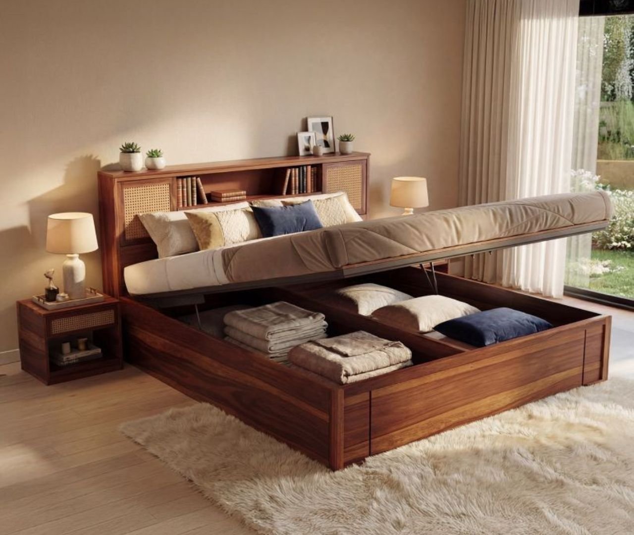 OakNest Hydraulic Storage Bed – Walnut Finish