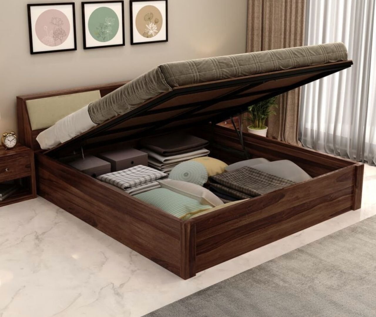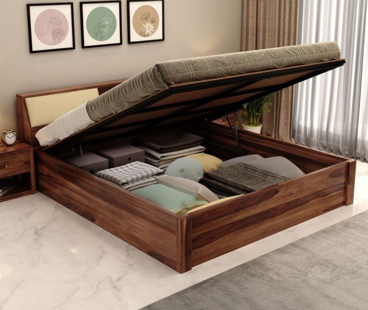OakNest Hydraulic Storage Queen Bed – Teak Finish