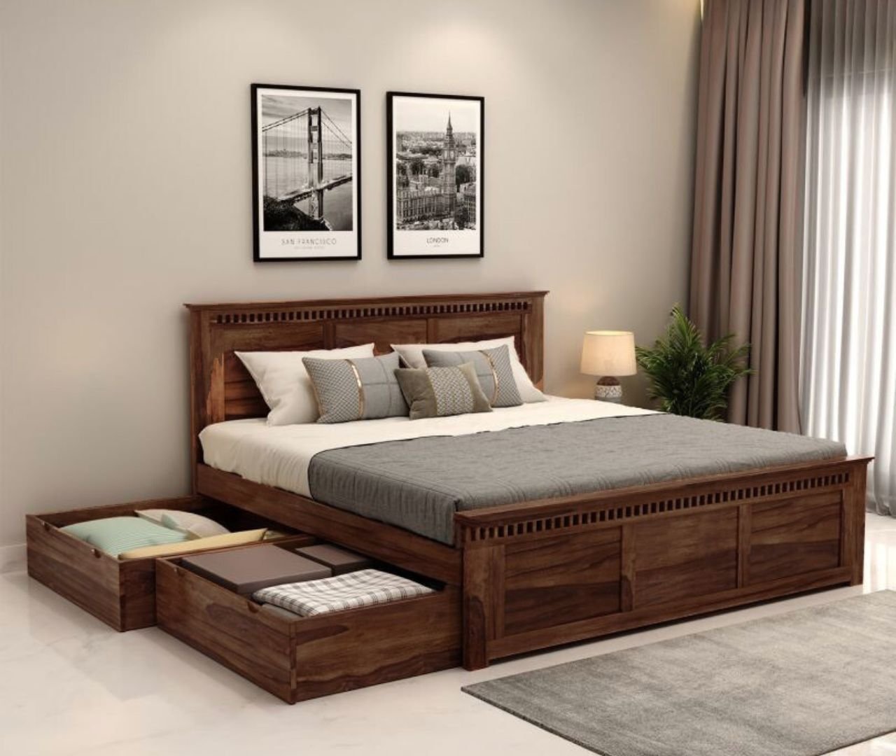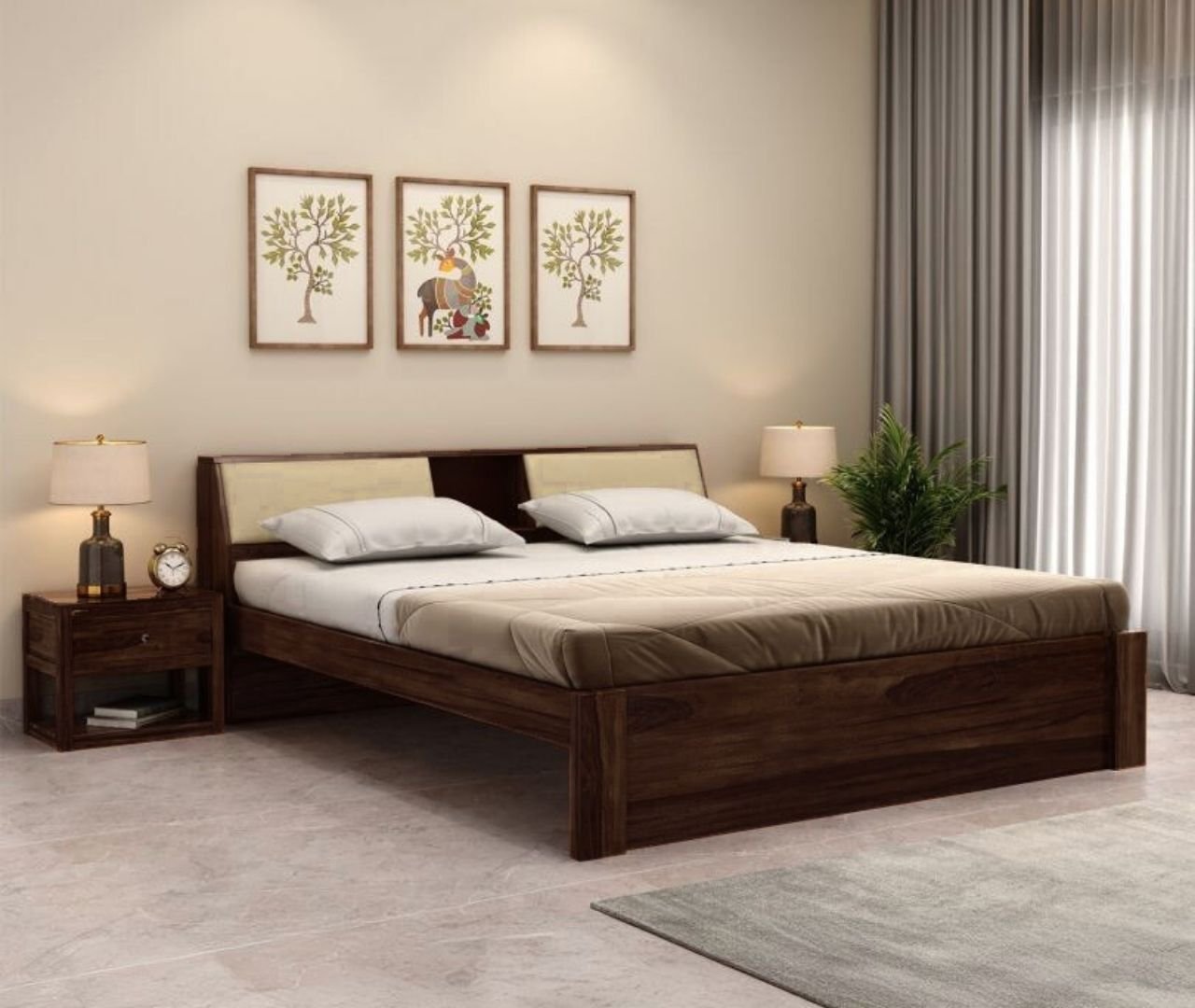 Solace Bed Queen With Drawer Storage-Teak