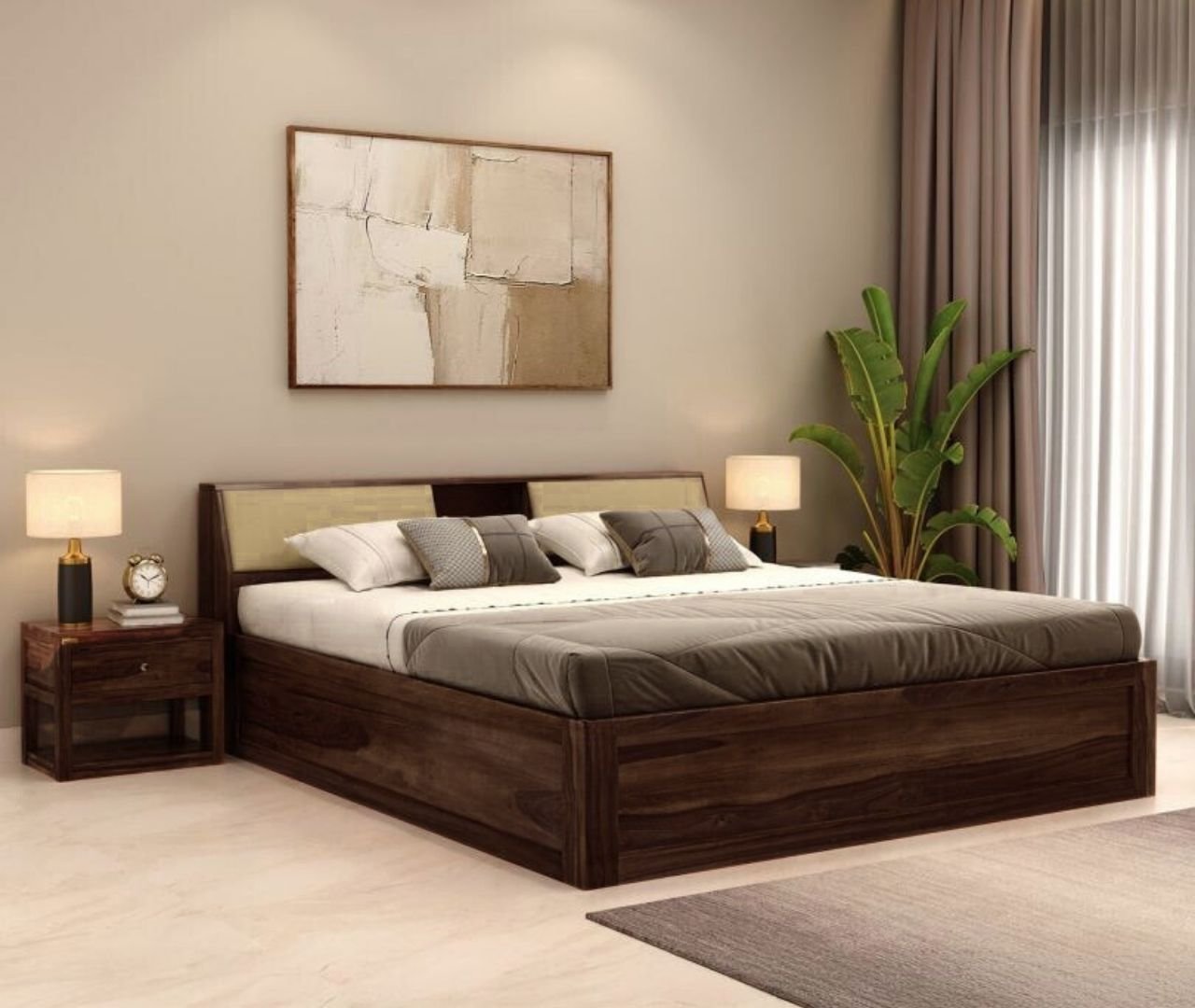 Solace Bed Queen With Box Storage-Teak