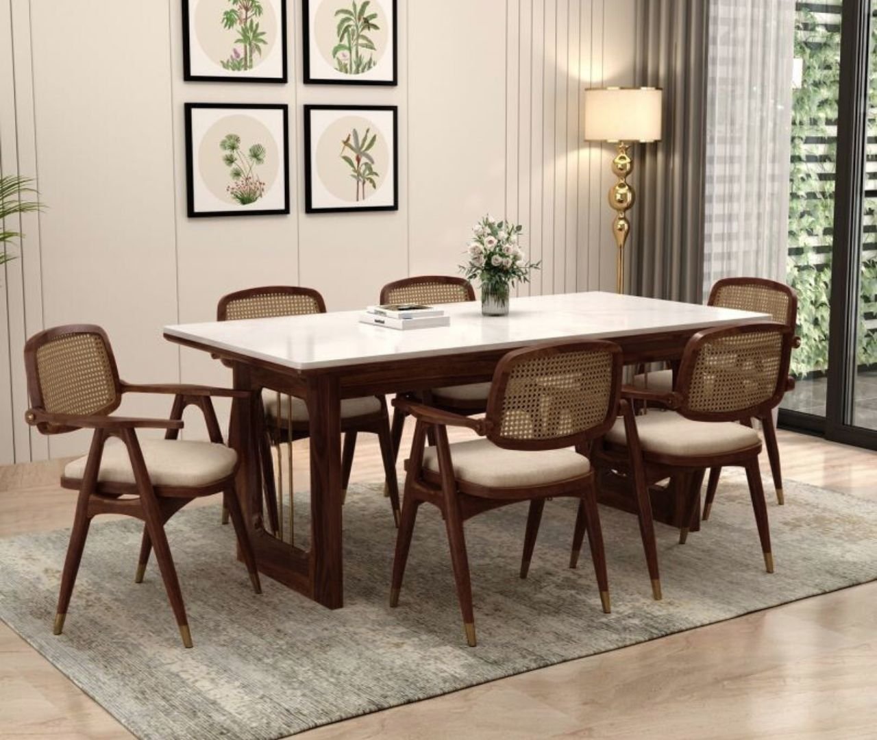 Mavrix Dining Table Set With Bench – Walnut Finish