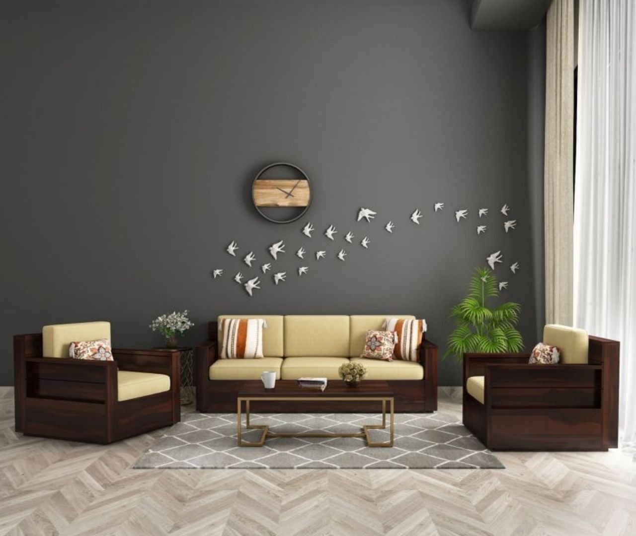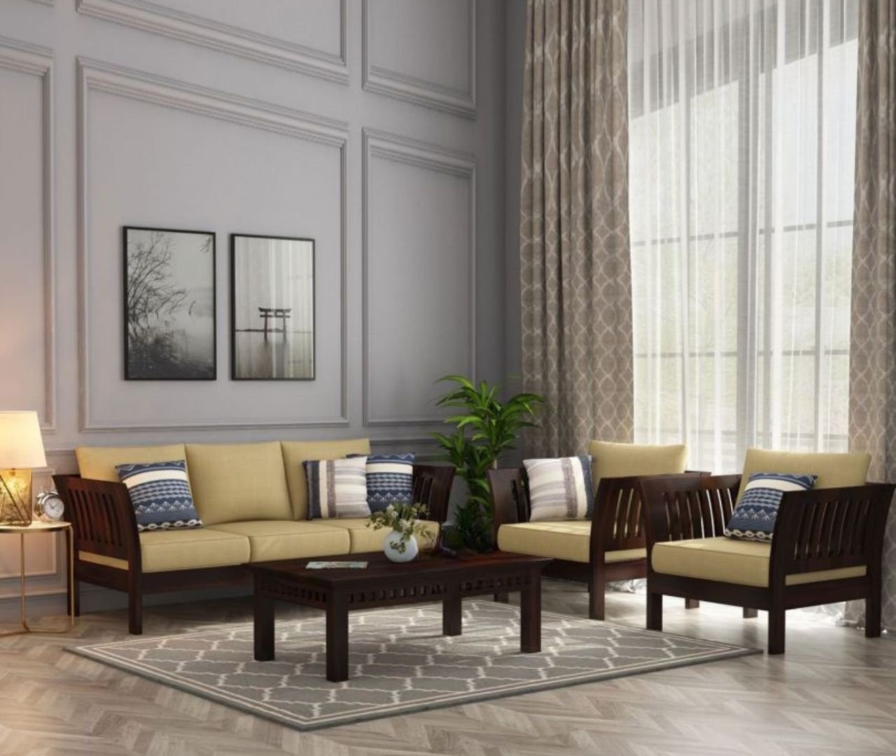 Heritage 3+1+1 Seater Sofa – Walnut Finish