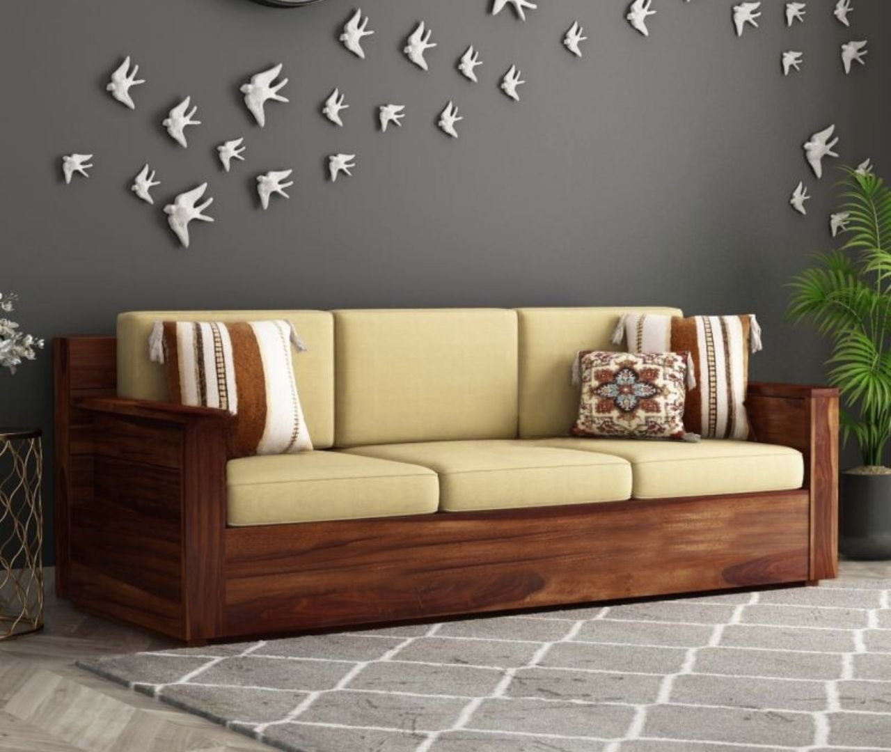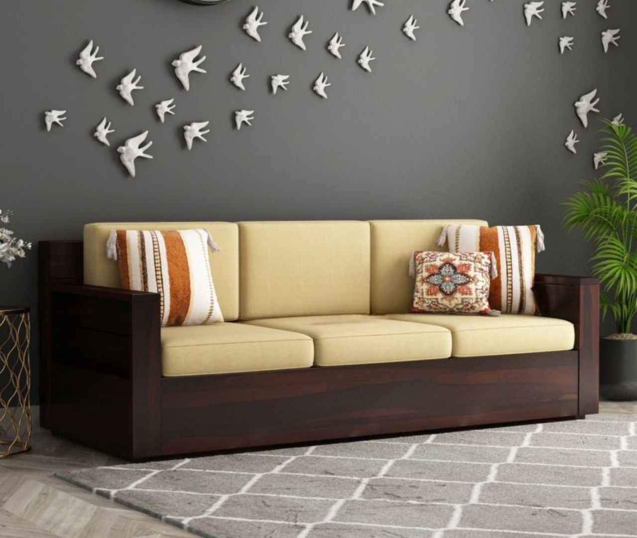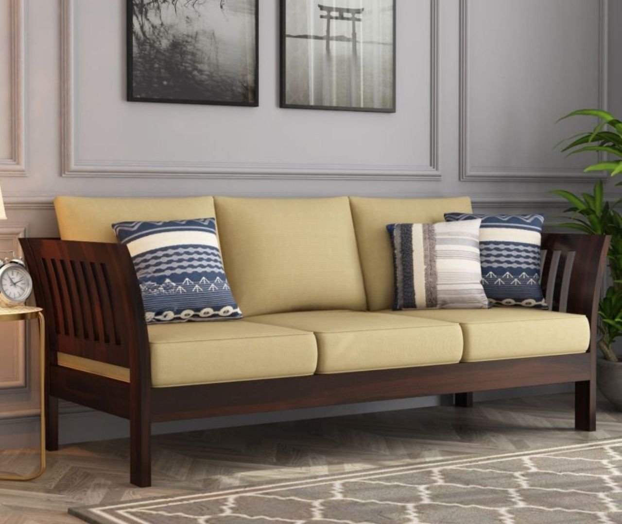 Classic Haveli Sofa 3 Seater – Walnut Finish