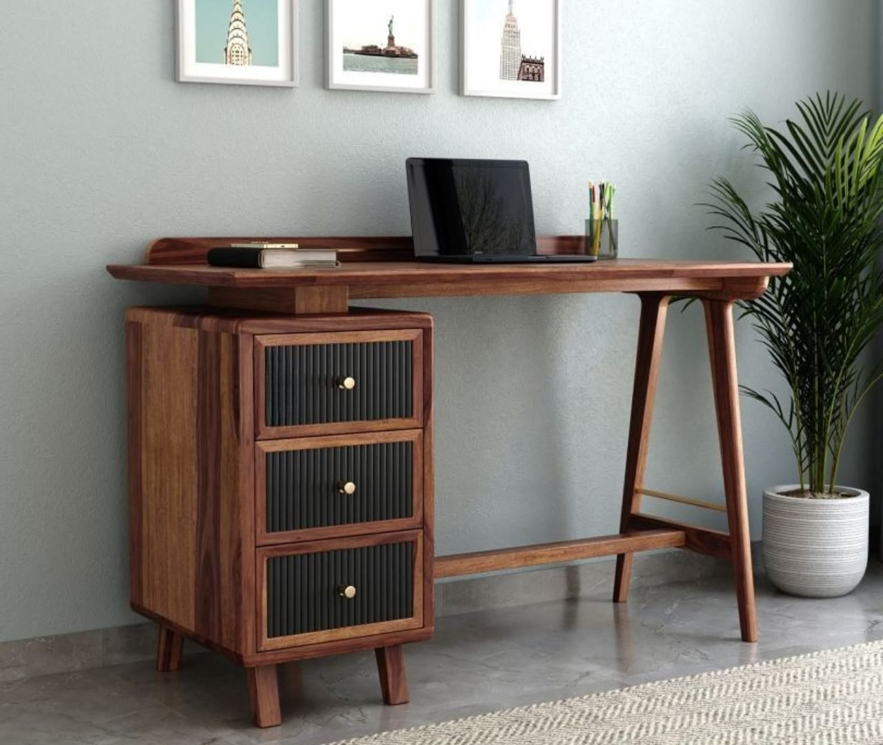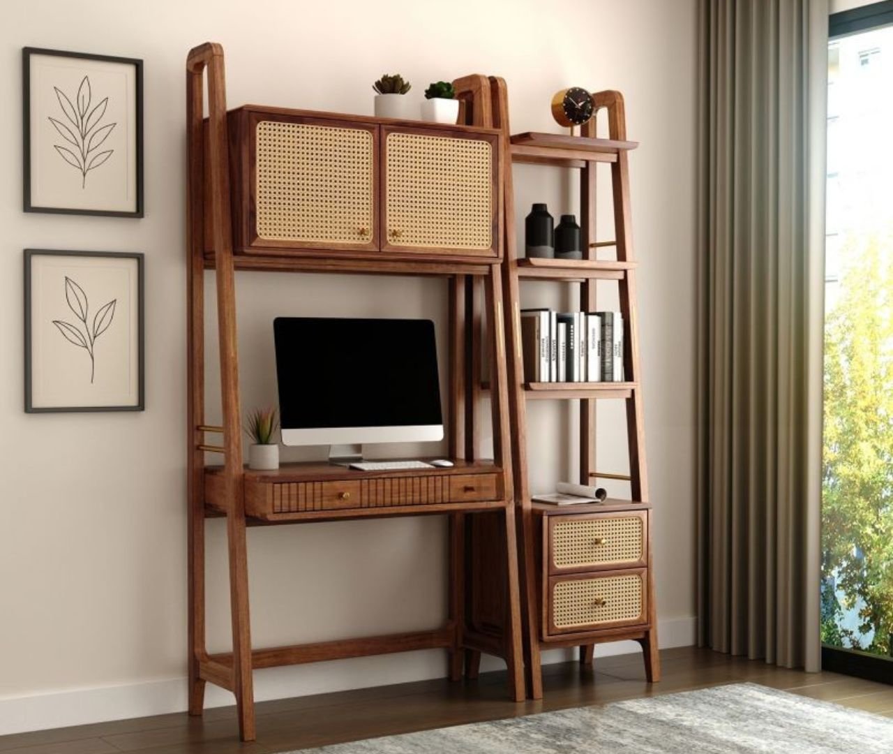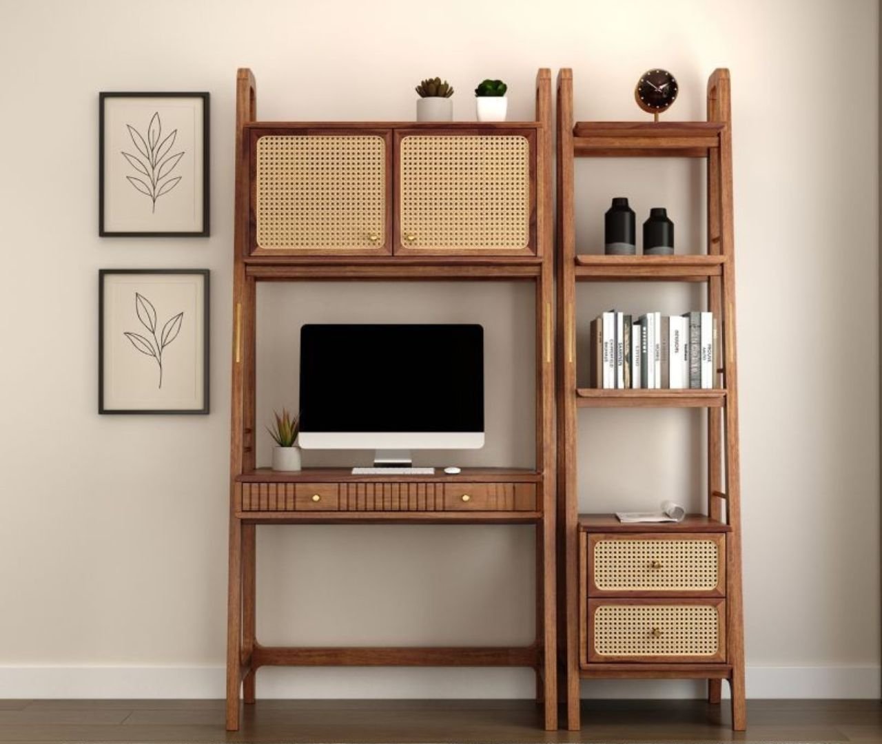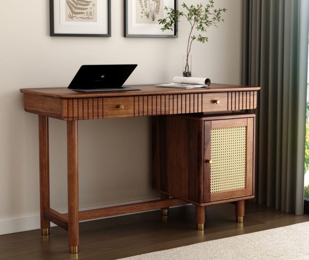 Alder Workstation with Pull Out Drawers and Cabinet – Honey Finish