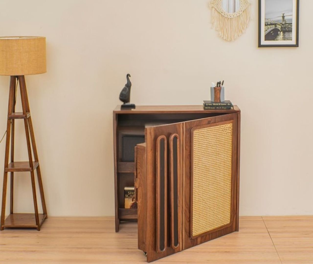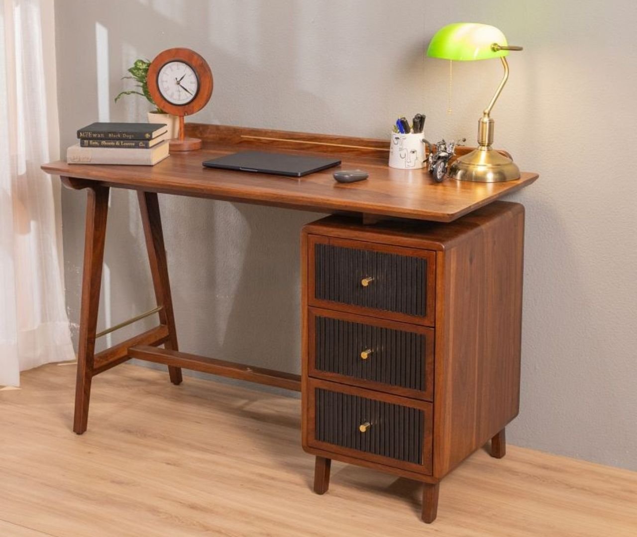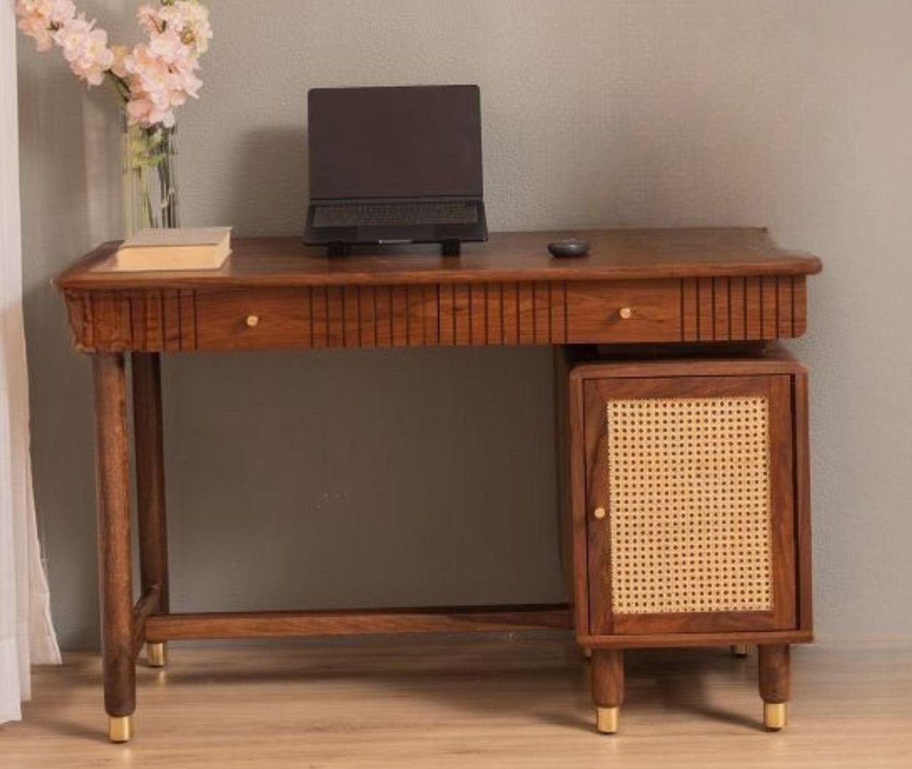 Alder Workstation with Pull Out Drawers and Cabinet – Walnut Finish