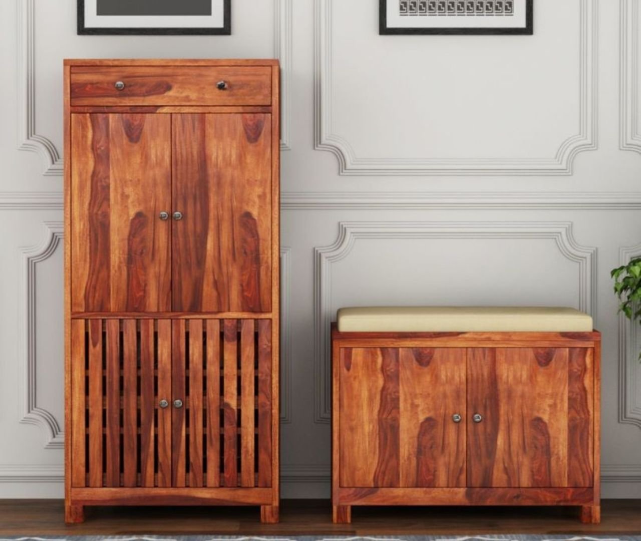 - Crafted with precision from premium solid wood, the Furniture by Piroji TV unit combines style, functionality, and durability.