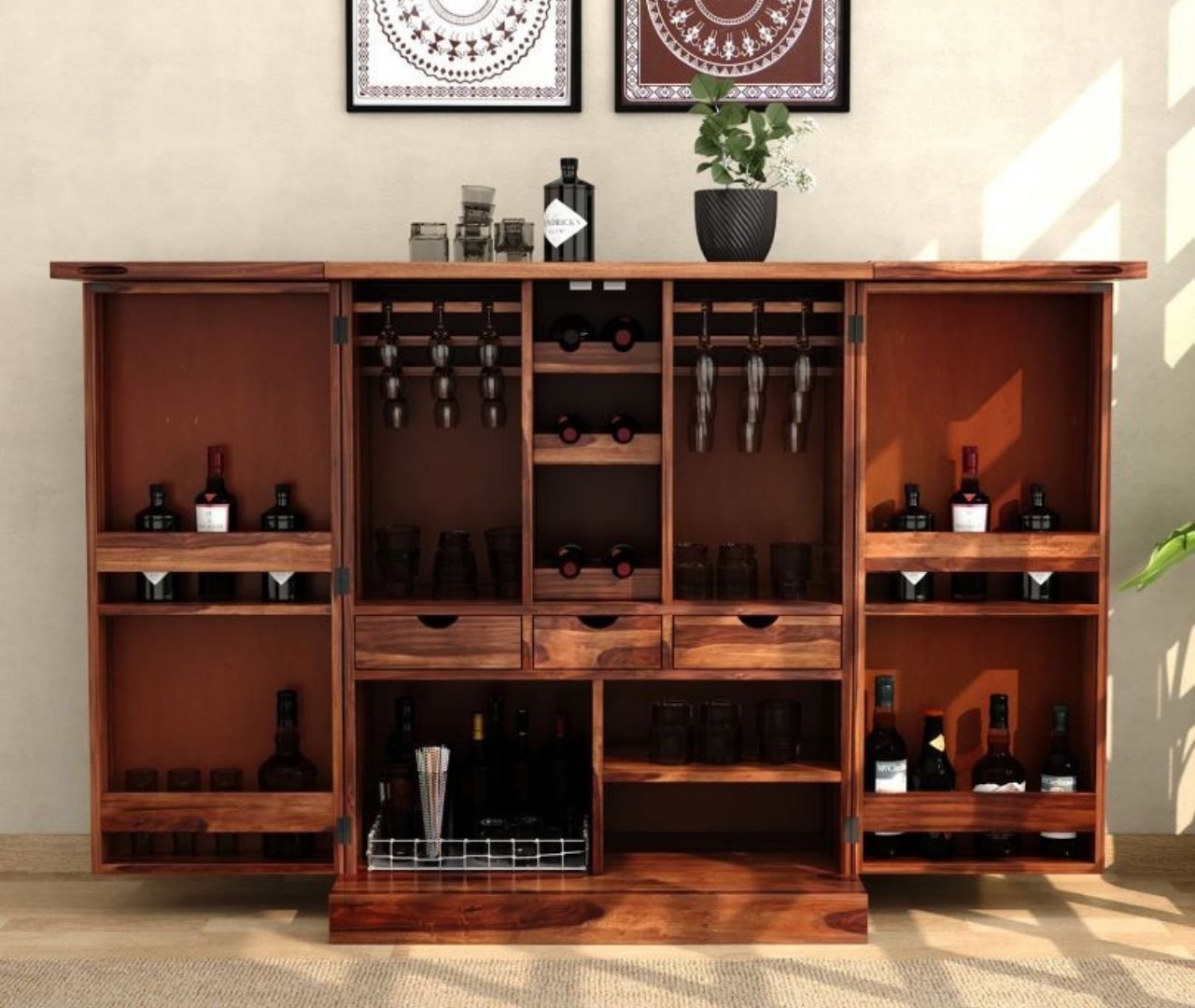 Built from robust Sheesham wood, the bar unit ensures long-term durability and dependable support. Its polished finish resists scratches, stains, and everyday wear, preserving its beauty and functionality for years.