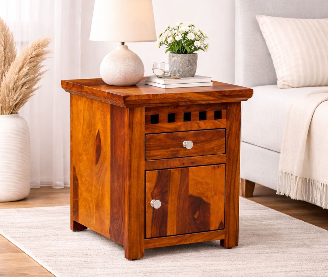 SierraRoot Bedside Table – Honey Finish