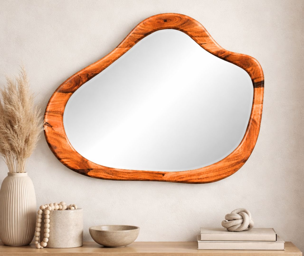 Veda Handcrafted Mirror Frame – Honey Finish