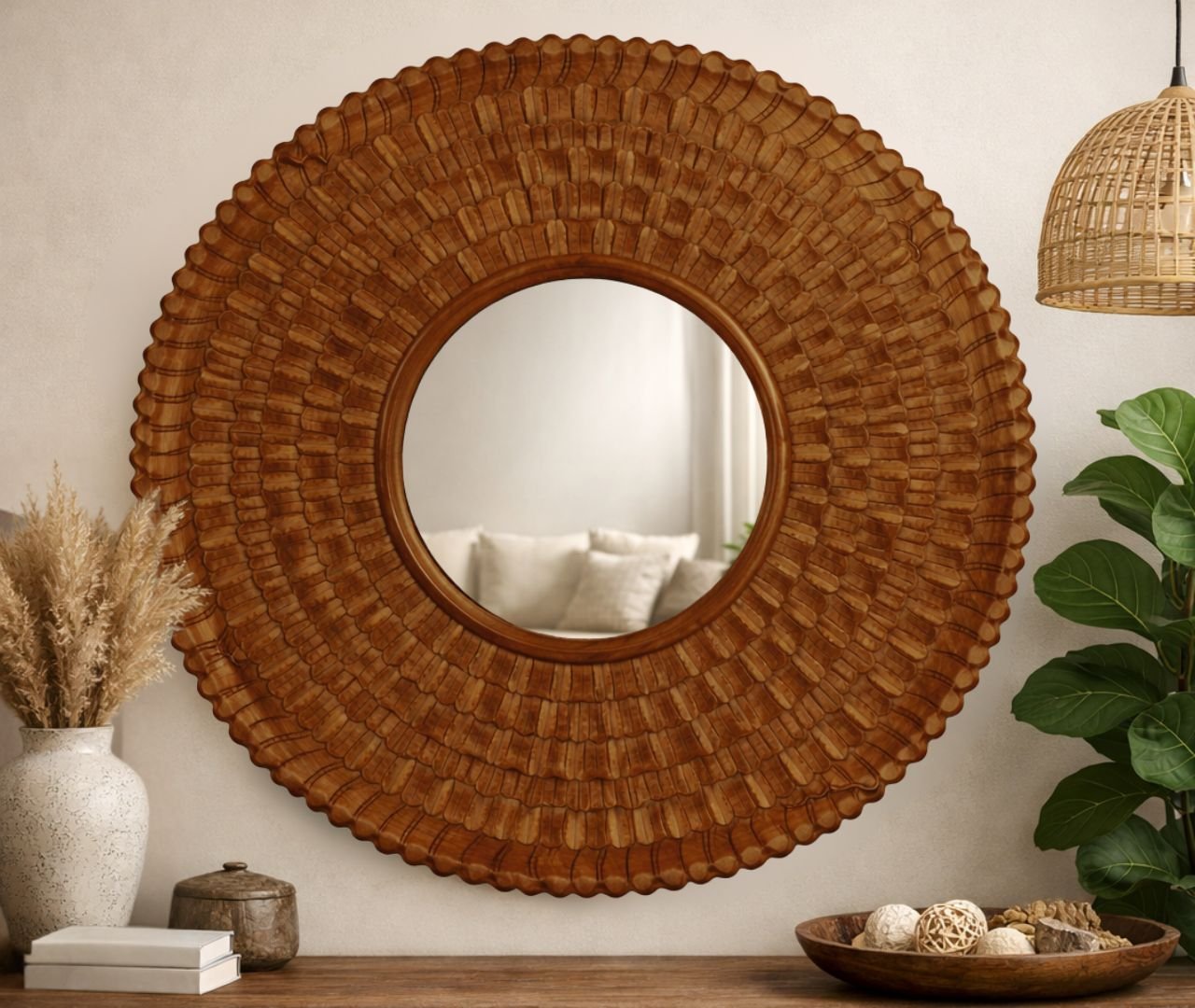 Crest Mirror – Teak Finish